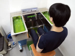 当院では、手による整体・鍼灸に加え、微弱電流機器「ソーマダイン・アクシー」や温浴「オンパー」、